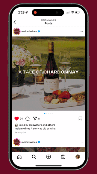Meiomi wine is a classically Californian wine brand beloved by wine drinkers all over the country, but despite its popularity the brand realized it had an opportunity to tap into new a new market using social. So they turned to Mekanism and had us develop some social assets for their Instagram, as well as some short form video paid content for Tiktok. Cheers!